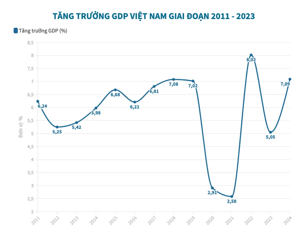Thật, một quốc gia cũng như là một doanh nghiệp, cũng phải có một chỉ số ở topline hay nói cách khác làm sao biết được một quốc gia/công ty đang trong giai đoạn tăng trưởng tốt. Với việc chính phủ Việt Nam hướng đến mục tiêu tăng trưởng GDP giai đoạn mới là 8%, vậy những năm trước tốc độ tăng trưởng GDP như thế nào